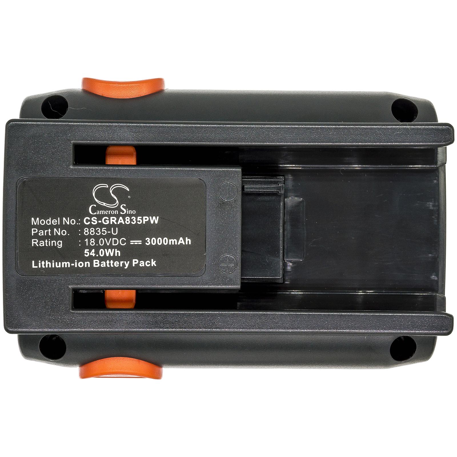 Item No.:CS-GRA835PW Type:Li-ion Capacity:3000mAh / 54.00Wh Voltage:18.0V Color:Black Dimension:114.83 x 81.18 x 88.17mm EAN Code:4894128078517 Net Weight:621.0g / 21.91oz ТЕХНИЧЕСКИ ДЕТАЙЛИ Тип аксесоар Акумулатор Химически състав Lithium Волтаж 18 V Капацитет 3000 mAh