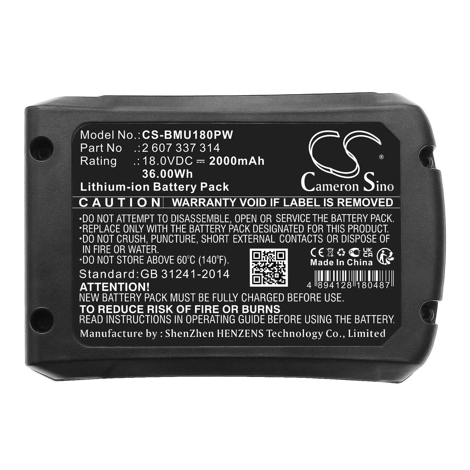 Item No.:CS-BMU180PW Type:Li-ion Capacity:2000mAh / 36.00Wh Voltage:18.0V Color:Black Dimension:116.00 x 80.30 x 45.20mm EAN Code:4894128180487 Net Weight:367.0g / 12.95oz ТЕХНИЧЕСКИ ДЕТАЙЛИ Тип аксесоар Акумулатор Химически състав Lithium Волтаж 18 V Капацитет 2000 mAh