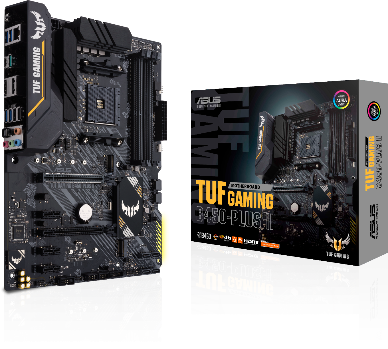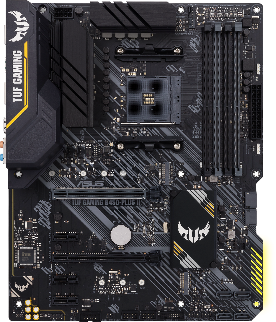 Дънна платка ASUS TUF GAMING B450-PLUS II, socket AM4, ATX, dual M.2, 4x DDR4, Aura Sync RGB, AI Noise-Canceling