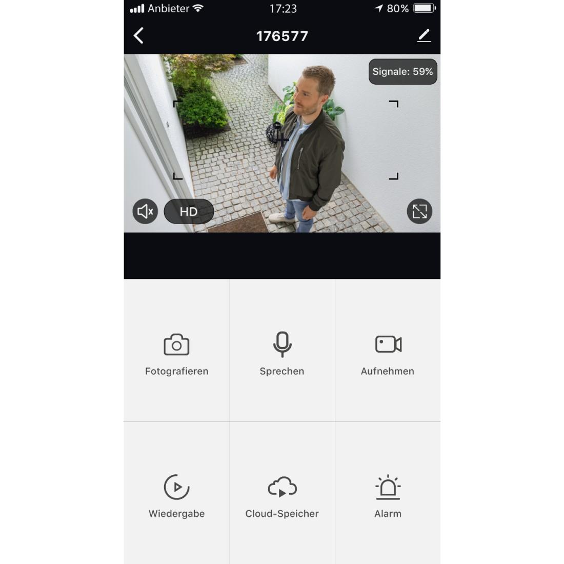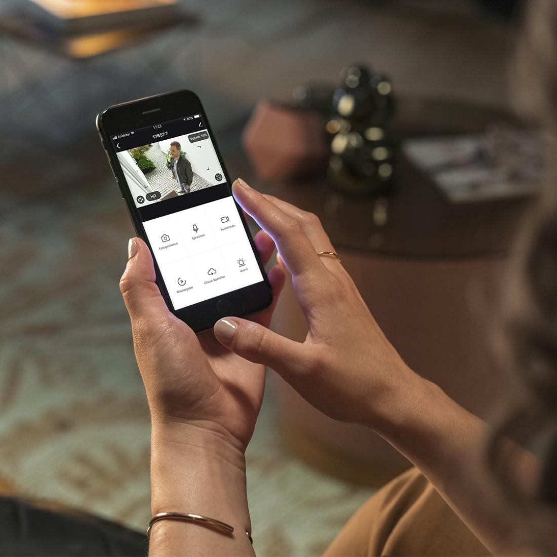 Двупосочен звук: микрофон и високоговорител позволява комуникация чрез външната WLAN камера дори когато не сте у дома