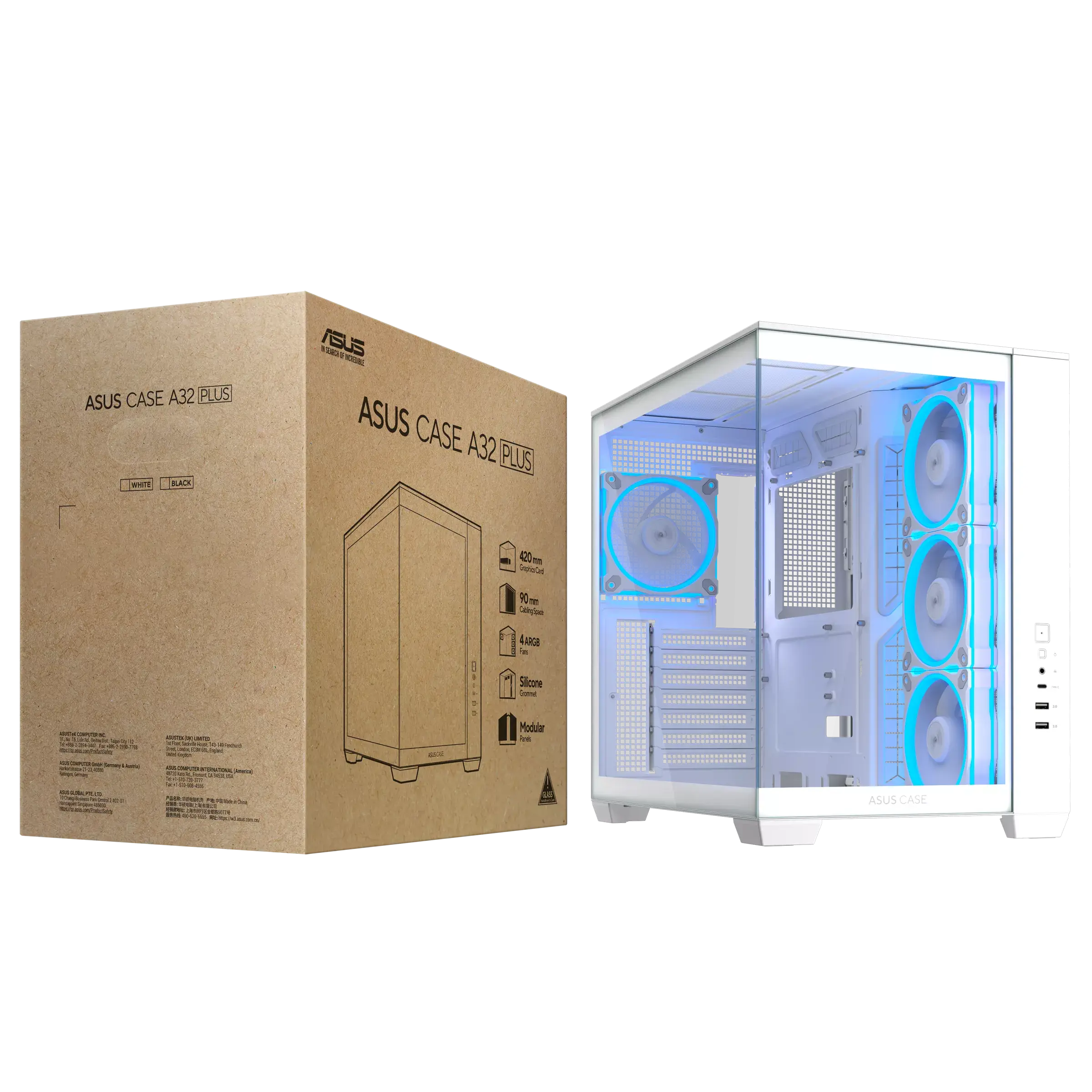 Кутия ASUS A32 PLUS Tempered Glass + 4 ARGB Вентилатора – White