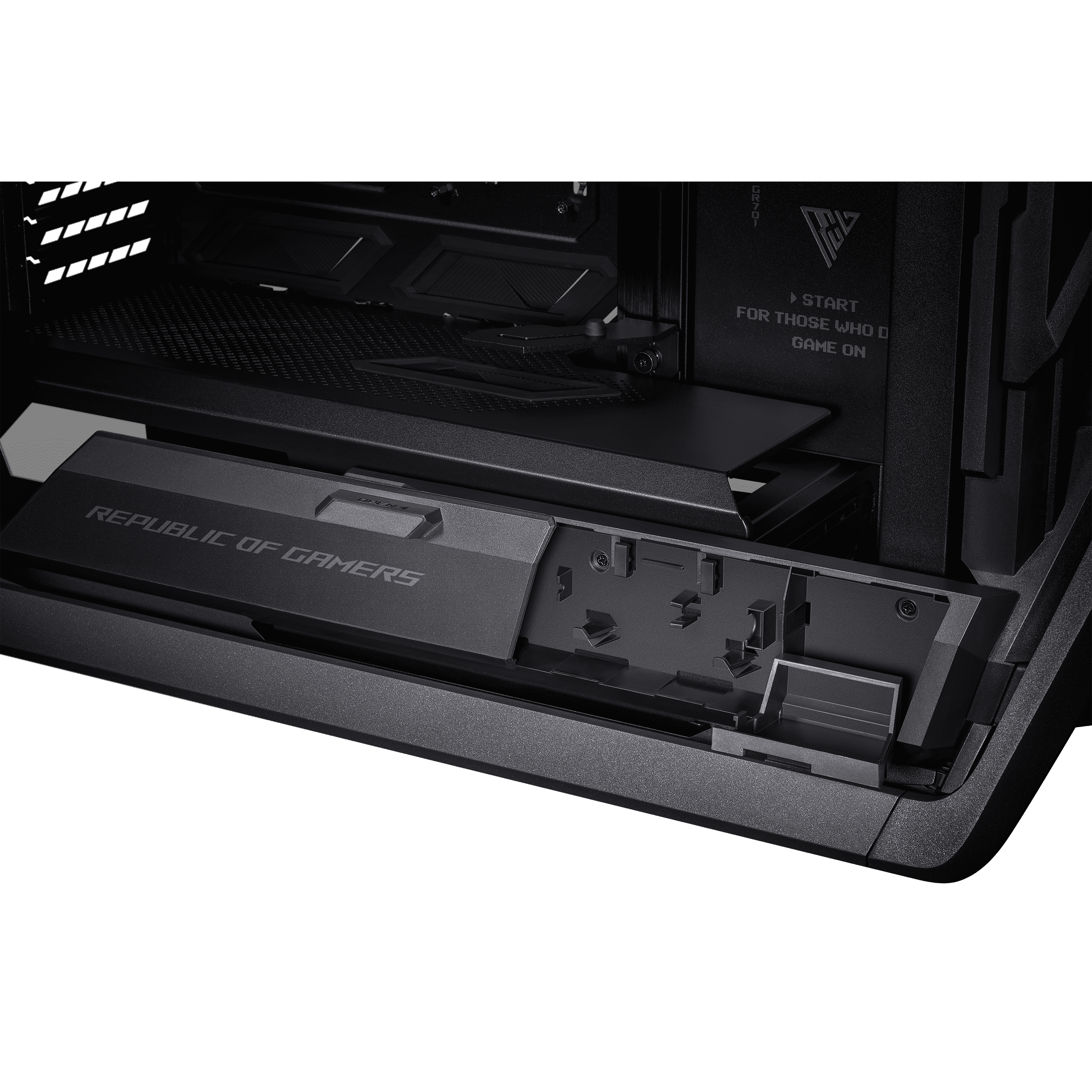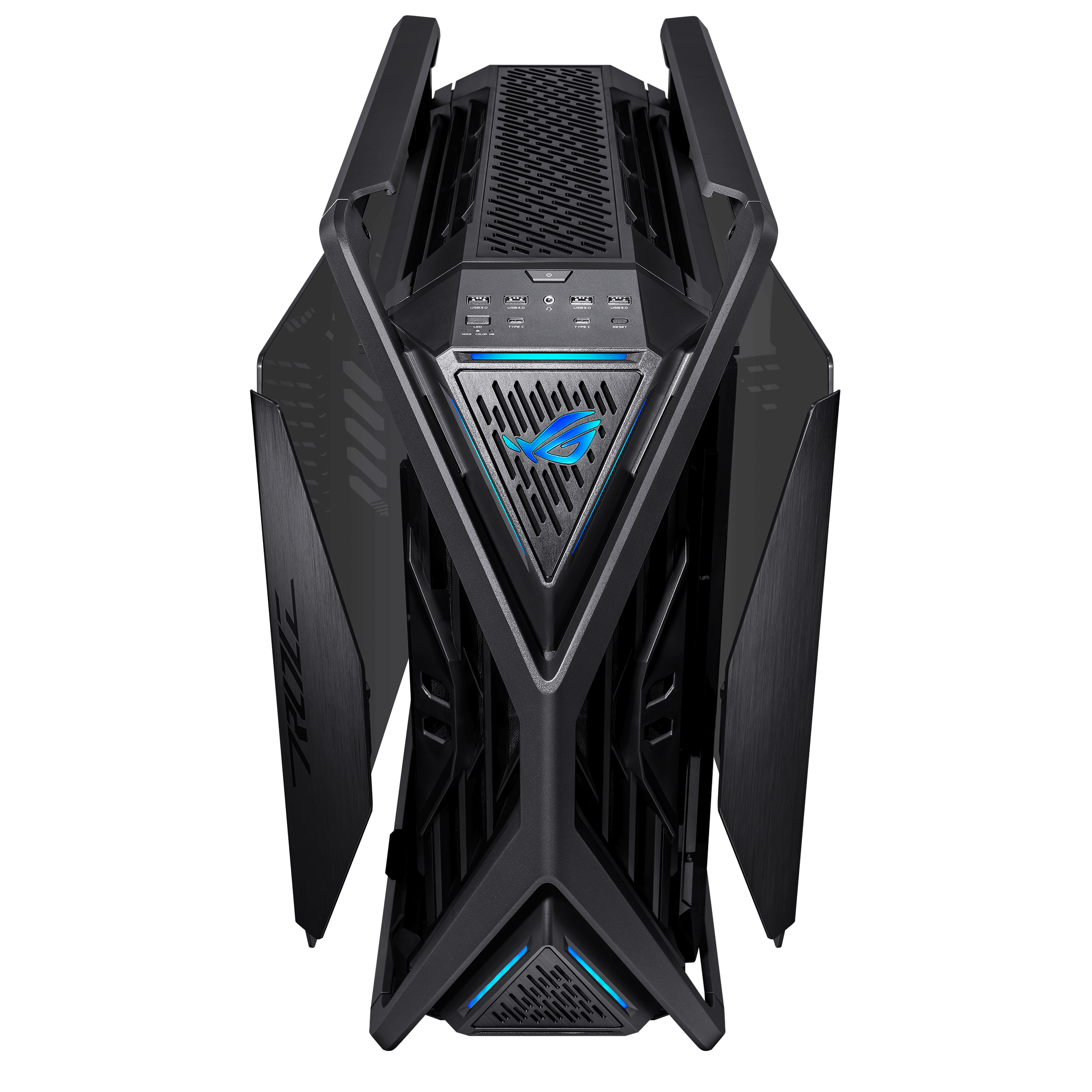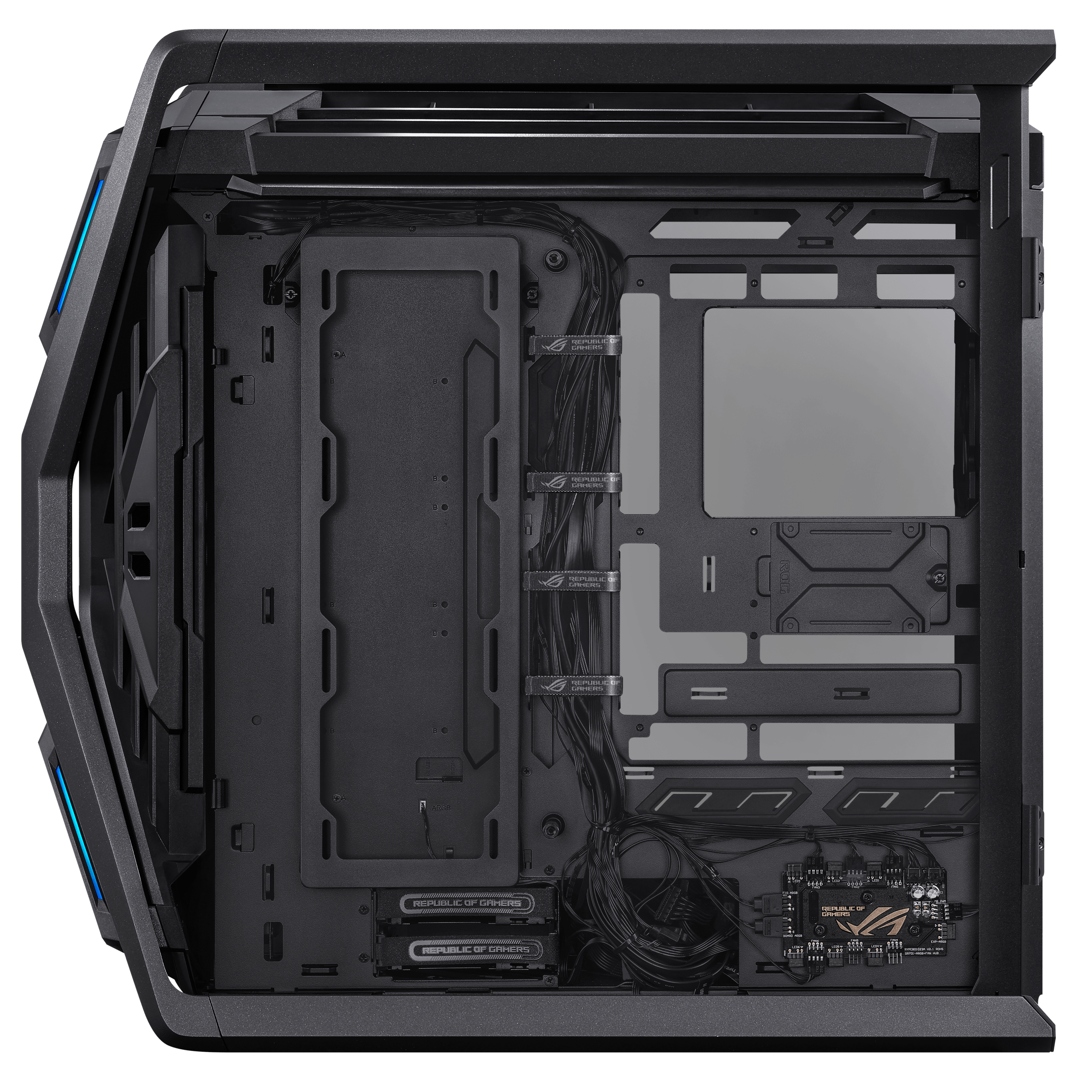 ROG Hyperion GR701 BTF Edition е висококласна геймърска компютърна кутия, създадена за максимално охлаждане, управление на кабелите и премиум дизайн. Отличава се с скрити конектори на дънната платка, което позволява чист и подреден външен вид.