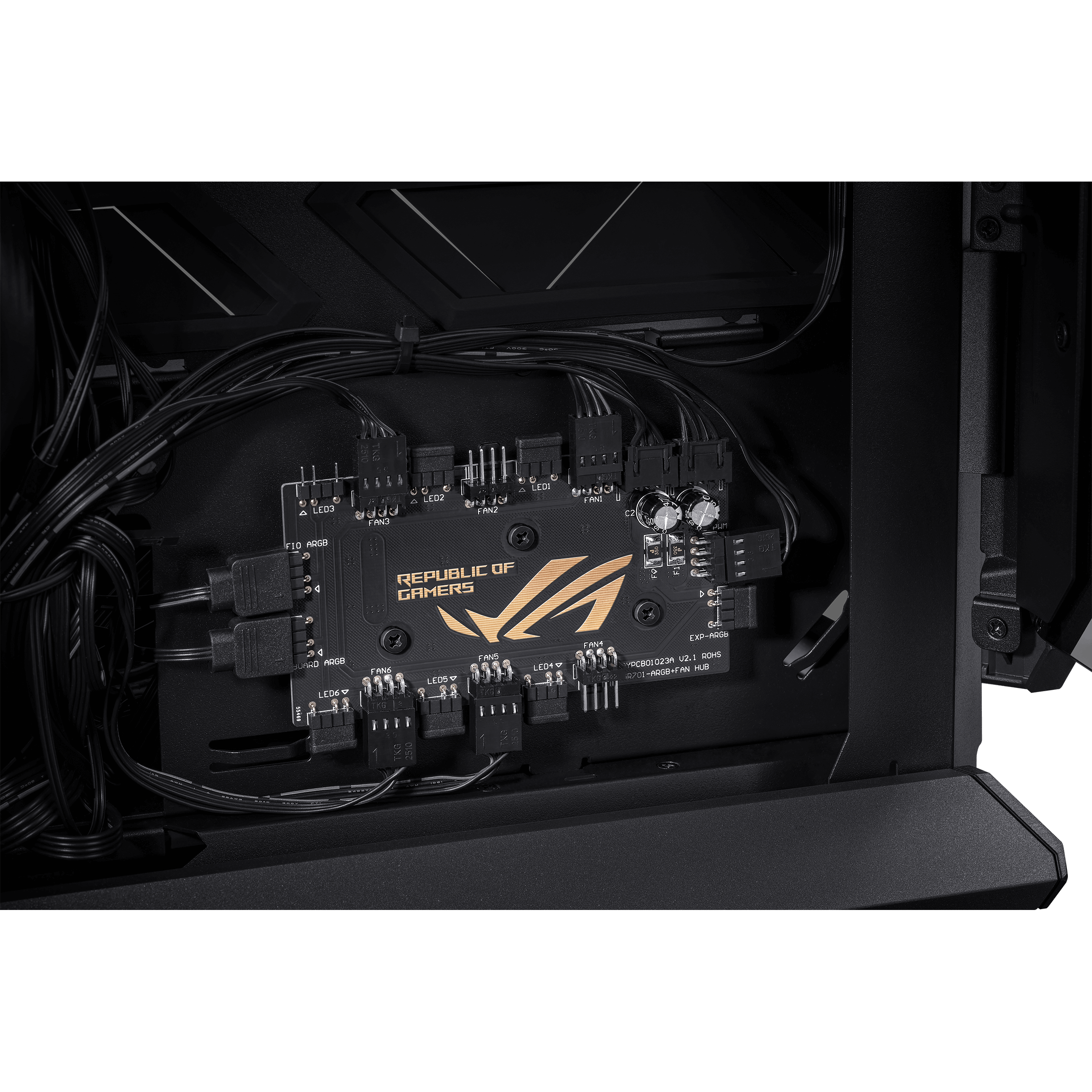 - Четири предварително инсталирани 140mm PWM вентилатора, свързани към Aura Sync ARGB хъб.