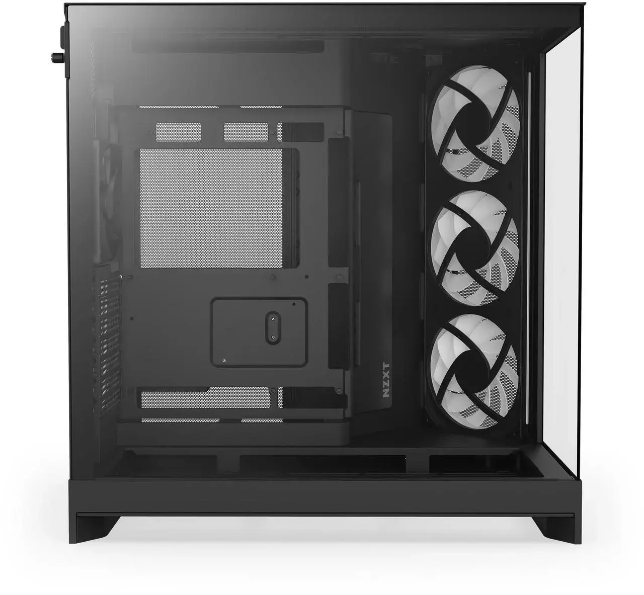 - Двукамерен дизайн: Отделя основните компоненти от PSU-то и дисковете за по-добра термична ефективност и управление на кабелите.