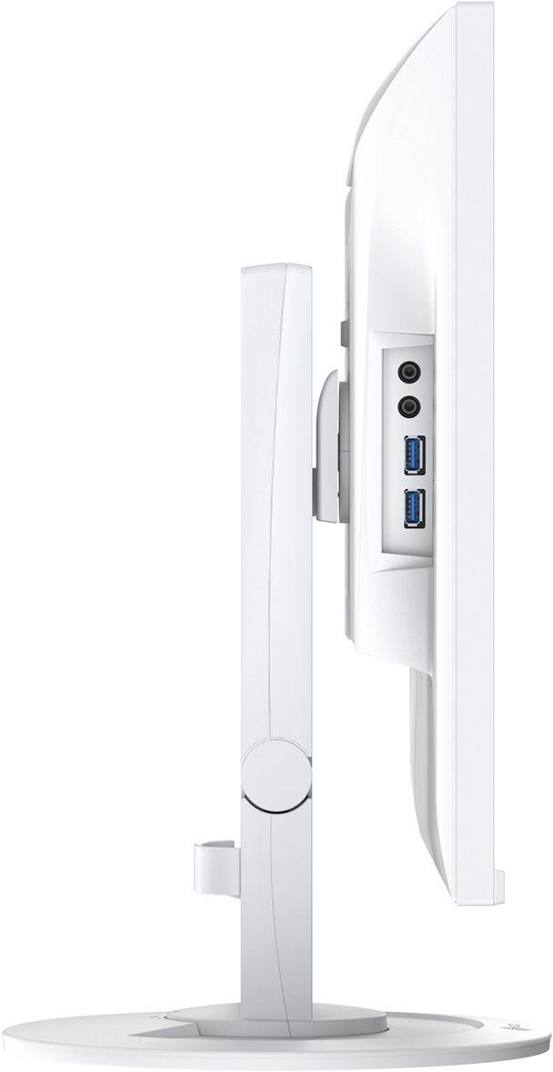 - Дизайн: Тънки рамки, избор между черен и бял корпус, и ергономична стойка с регулиране на височина, наклон, завъртане и портретен режим.