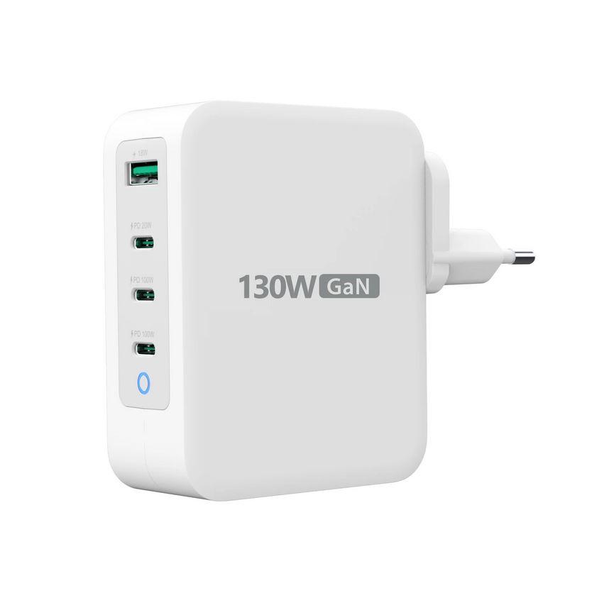 Зареждайте три USB-C® устройства и USB™ Type-A устройство едновременно с 130W 4-портово PD USB-C® супер зарядно устройство. То използва GaN технология, позволяваща му да осигури много мощност в компактен размер. USB-C® портовете са оборудвани с технология Power Delivery 3.0/2.0, която ви позволява да зареждате телефони, таблети или лаптопи с възможно най-бързите скорости. Предлага се и със защита от пренапрежение, презареждане, свръхток и защита от прегряване, за да предпази включените устройства. Неговите превъзходни възможности за зареждане, широка съвместимост и малък дизайн го правят чудесен за замяна на оригиналното зарядно устройство, което се доставя с различни мобилни устройства.