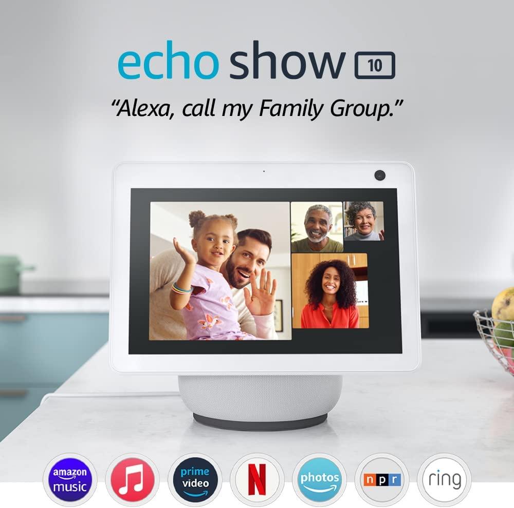 Компактен 10″ интелигентен дисплей с Alexa, готов да помогне.
