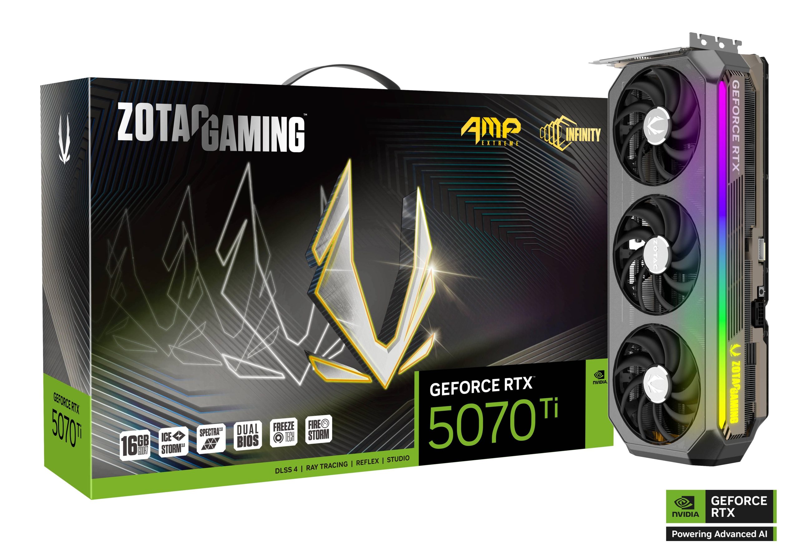 ZOTAC GAMING GeForce RTX 5070 Ti AMP Extreme INFINITY е висок клас графична карта, базирана на NVIDIA Blackwell архитектурата, предназначена за гейминг и професионални приложения. Тя предлага DLSS 4, AI-усъвършенствана графика и революционна система за охлаждане, което я прави мощен и ефективен избор за ентусиасти.